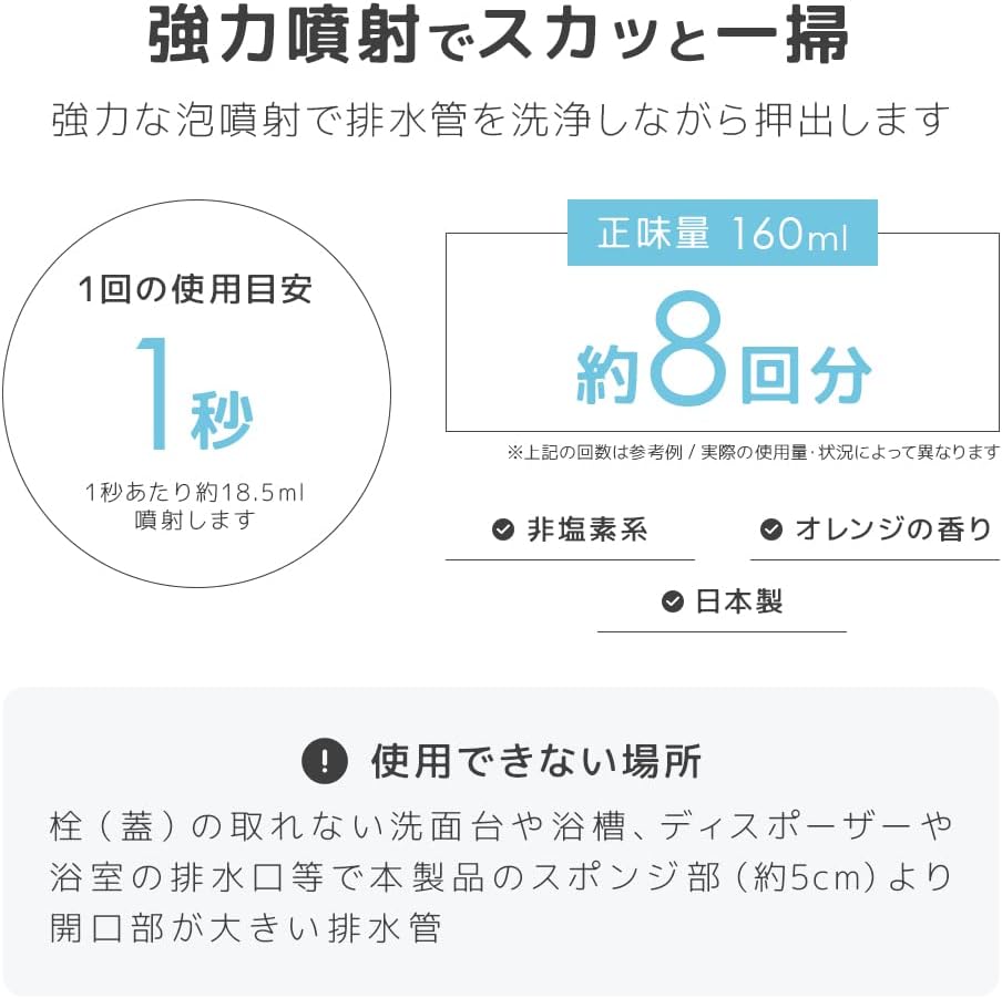 - Recommended usage: Approximately 1-second spray per use (about 18.5ml). Adjust the amount based on the shape and dirt of the drainage pipe.